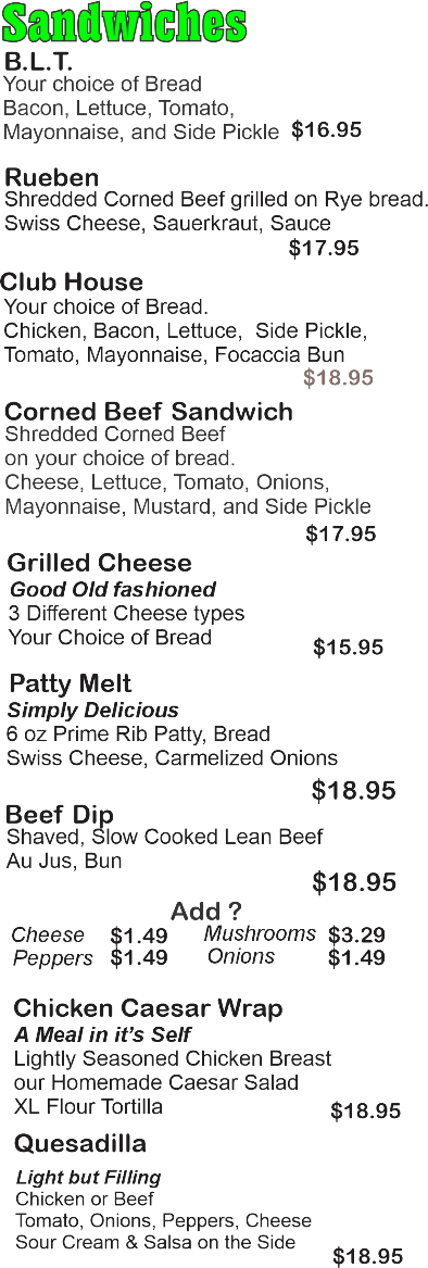Sandwiches - Sunridge restaurant